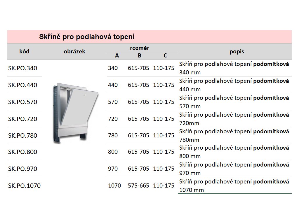 - Typ: podomítková skříň pro rozdělovač